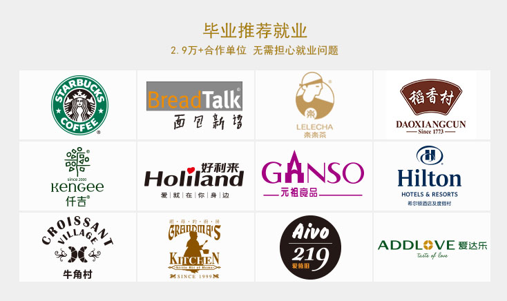 通过教学培训后使学生熟悉和掌握西式面点师基础知识和技能知识,了解相关原料知识,并能熟练运用,完成学业后可进入各大酒店饼房工作及西点连锁店工作,具有西饼店、烘焙坊、面包房等操作经验。